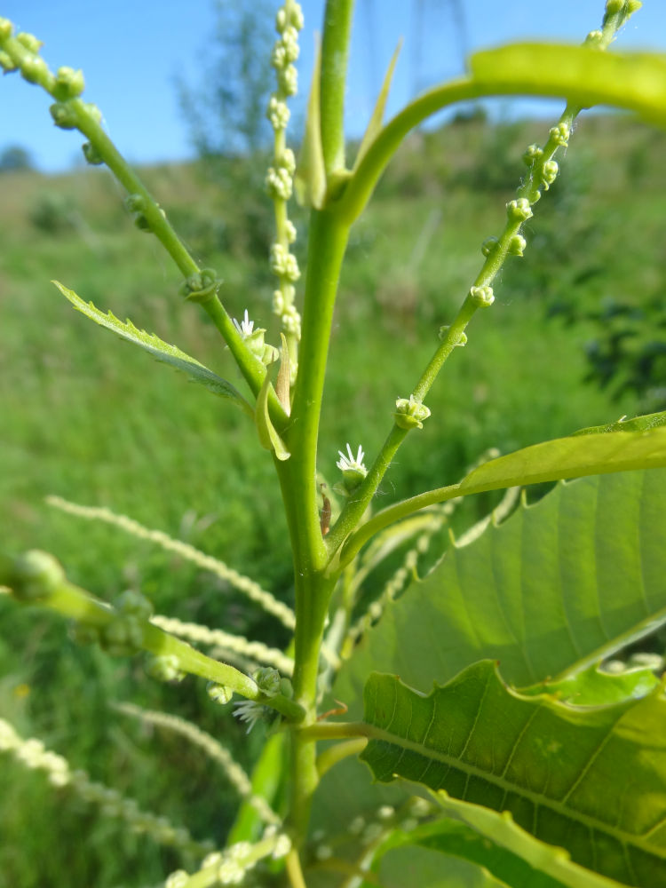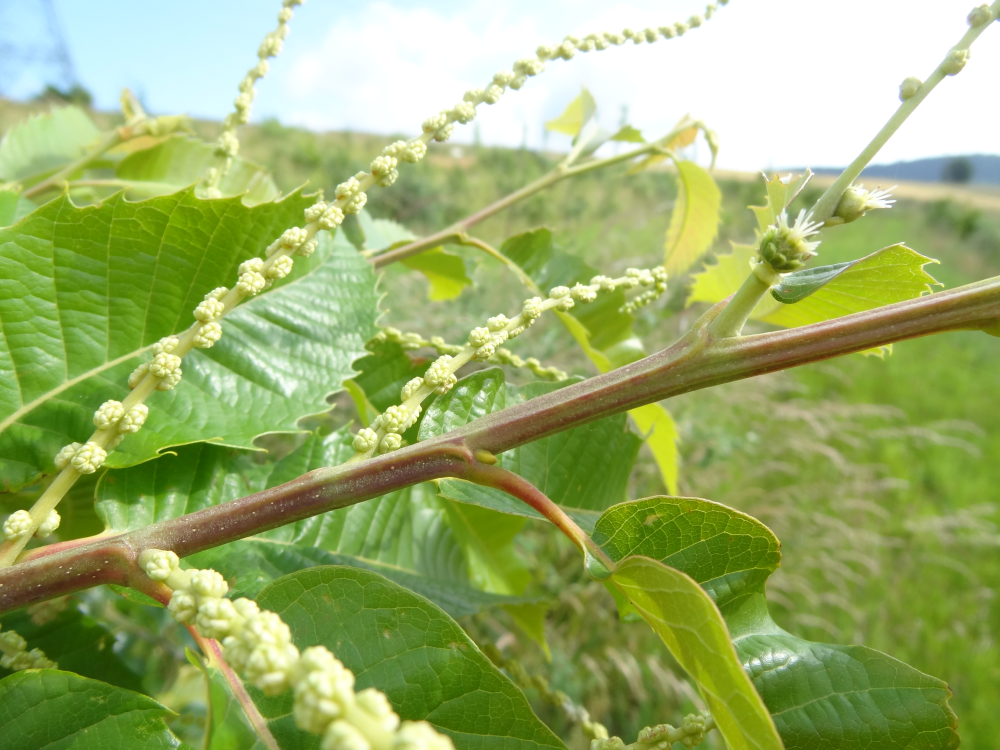 Hinweis: die langen Ruten mit den Knöllchen sind die (noch nicht voll entwickelten) männlichen Blüten.